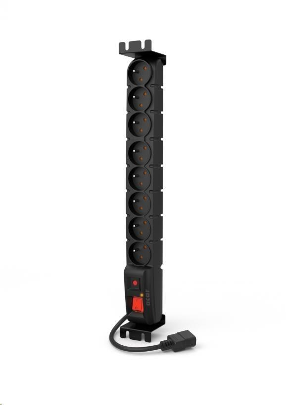 19" rozvodný panel ACAR 8x230V s IEC konektorem pro UPS, vypínač, indikátor napětí, přepěťová ochrana, kabel 3m