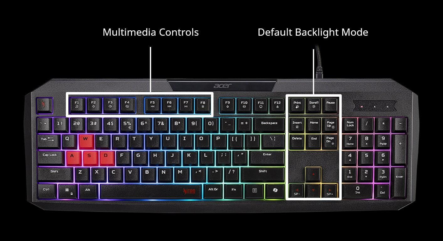 Klávesnice s sedmi zónami RGB a jedenácti přednastavenými režimy vylepšuje vaše zařízení živými RGB efekty a umožňuje vám snadno přepínat mezi režimy pro dokonalou herní atmosféru.