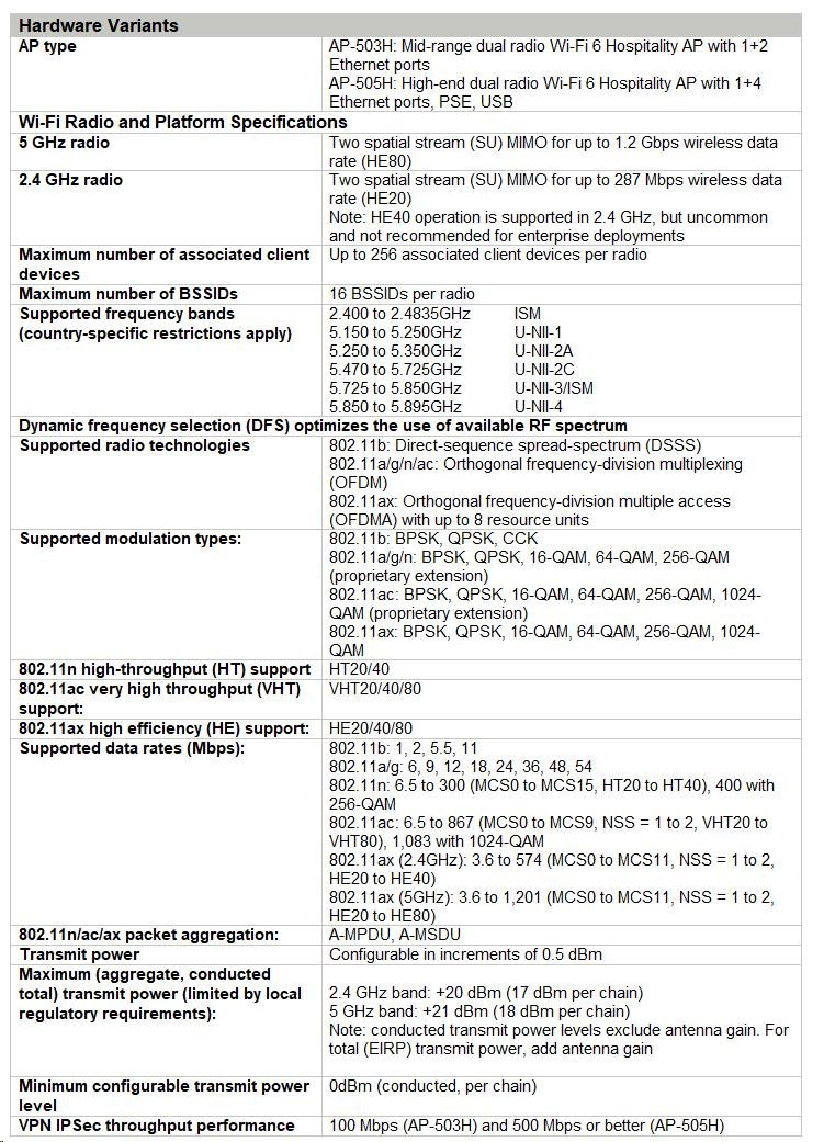 Aruba AP-503H (RW) Dual-radio 802.11ax 2x2 Unified Hospitality AP with 1+2 Ethernet R3V36AR RENEW.