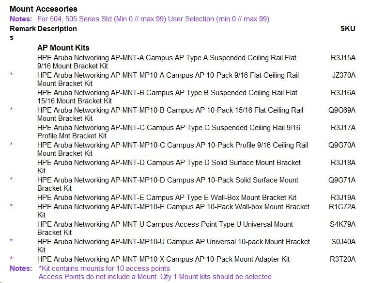 Technical specifications HPE Aruba Networking AP-505 (RW) Dual Radio 2x2 802.11ax Internal Antennas Unified Campus AP Product Number R2H28A Differentiator Available everywhere except US, Israel, Japan and Egypt Certifications UL2043 plenum rating Wi-Fi Alliance: Wi-Fi CERTIFIED a, b, g, n, ac Wi-Fi CERTIFIED 6 (ax) WPA, WPA2 and WPA3-Enterprise with CNSA option, Personal (SAE), Enhanced Open (OWE) WMM, WMM-PS, W-Fi Agile Multiband Wi-Fi CERTIFIED Location™ Bluetooth SIG Ethernet Alliance (PoE, PD device, Class 4) Regulatory FCC/ISED CE Marked RED Directive 2014/53/EU EMC Directive 2014/30/EU Low Voltage Directive 2014/35/EU UL/IEC/EN 62368-1 EN 60601-1-1, EN60601-1-2 Wi-Fi antenna Two integrated dual-band downtilt omni-directional antennas for 2x2 MIMO with peak antenna gain of 4.9dBi in 2.4GHz and 5.7dBi in 5GHz. Connectivity, standard Wi-Fi 6 (IEEE 802.11ax) Ports E0: Ethernet wired network port (RJ-45) USB 2.0 host interface (type A connector) Serial console interface (proprietary, micro-B USB physical jack) Kensington security slot. Mounting See product ordering guide Power consumption Maximum (worst-case) power consumption (without/with a USB device attached): PoE powered (802.3at): 11.0W / 16.5W PoE powered (802.3af): 11.0W / 13.5W This assumes that up to 5W is supplied to the attached USB device Maximum (worst-case) power consumption in idle mode: 4.3W (DC) or 6.2W (PoE) Maximum (worst-case) power consumption in deep-sleep mode: 1.7W (DC) or 3.7W (PoE) Radio coverage AP type: Indoor, dual radio, 5 GHz and 2.4 GHz 802.11ax 2x2 MIMO 5 GHz radio: Two spatial stream Single User (SU) MIMO for up to 1.2 Gbps wireless data rate with 2SS HE80 802.11ax client devices. 2.4 GHz radio: Two spatial stream Single User (SU) MIMO for up to 574 Mbps (287 Mbps) wireless data rate with 2SS HE40 (HE20) 802.11ax client devices. Warranty Limited lifetime warranty. See the warranty duration. Product dimensions (metric) 37 x 160 x 161 mm Weight 500 g