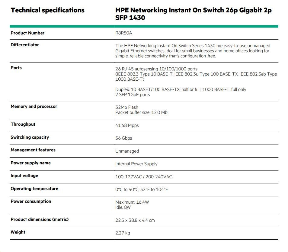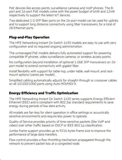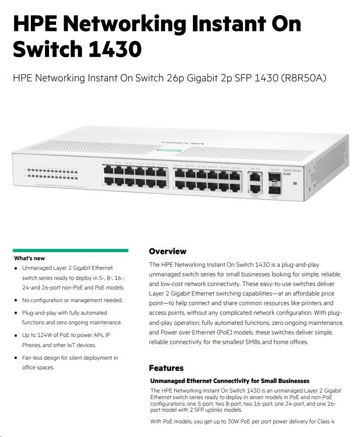 HPE Networking Instant On Switch 26p Gigabit 2p SFP 1430.