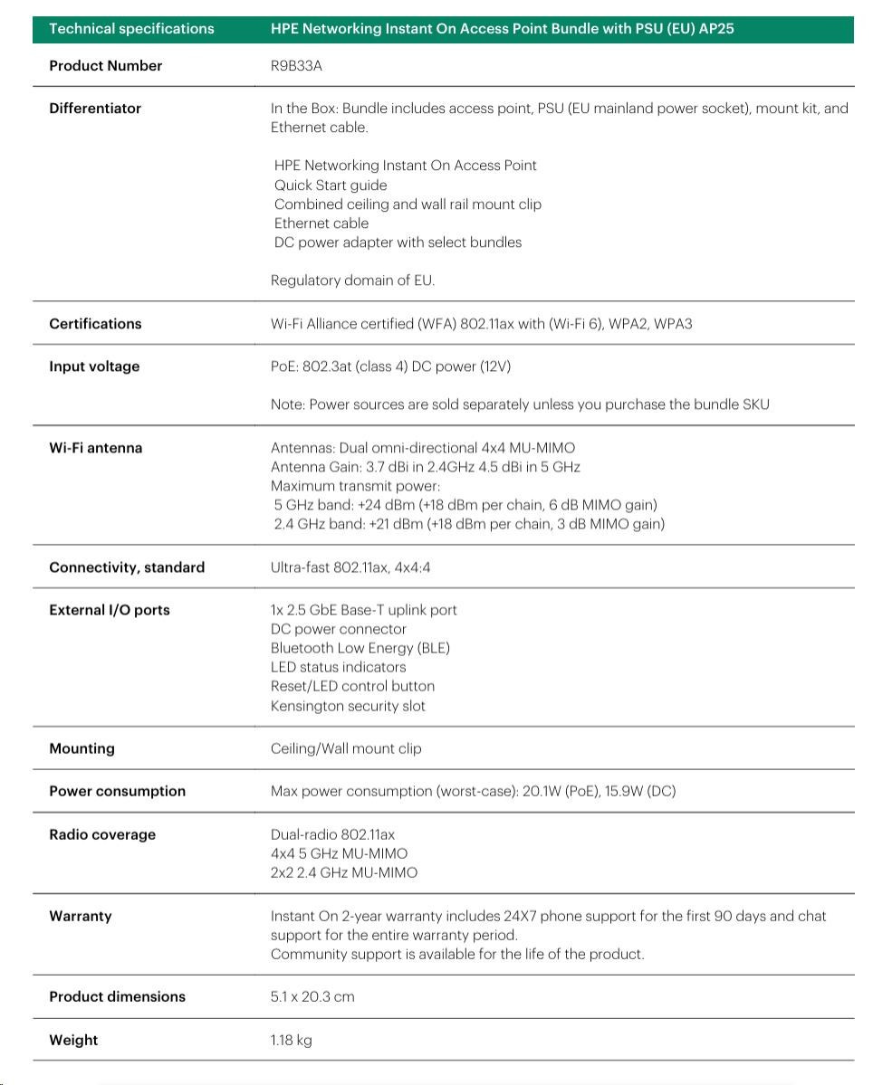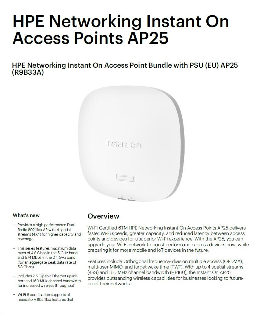 HPE Networking Instant On Access Point Bundle with PSU (EU) AP25