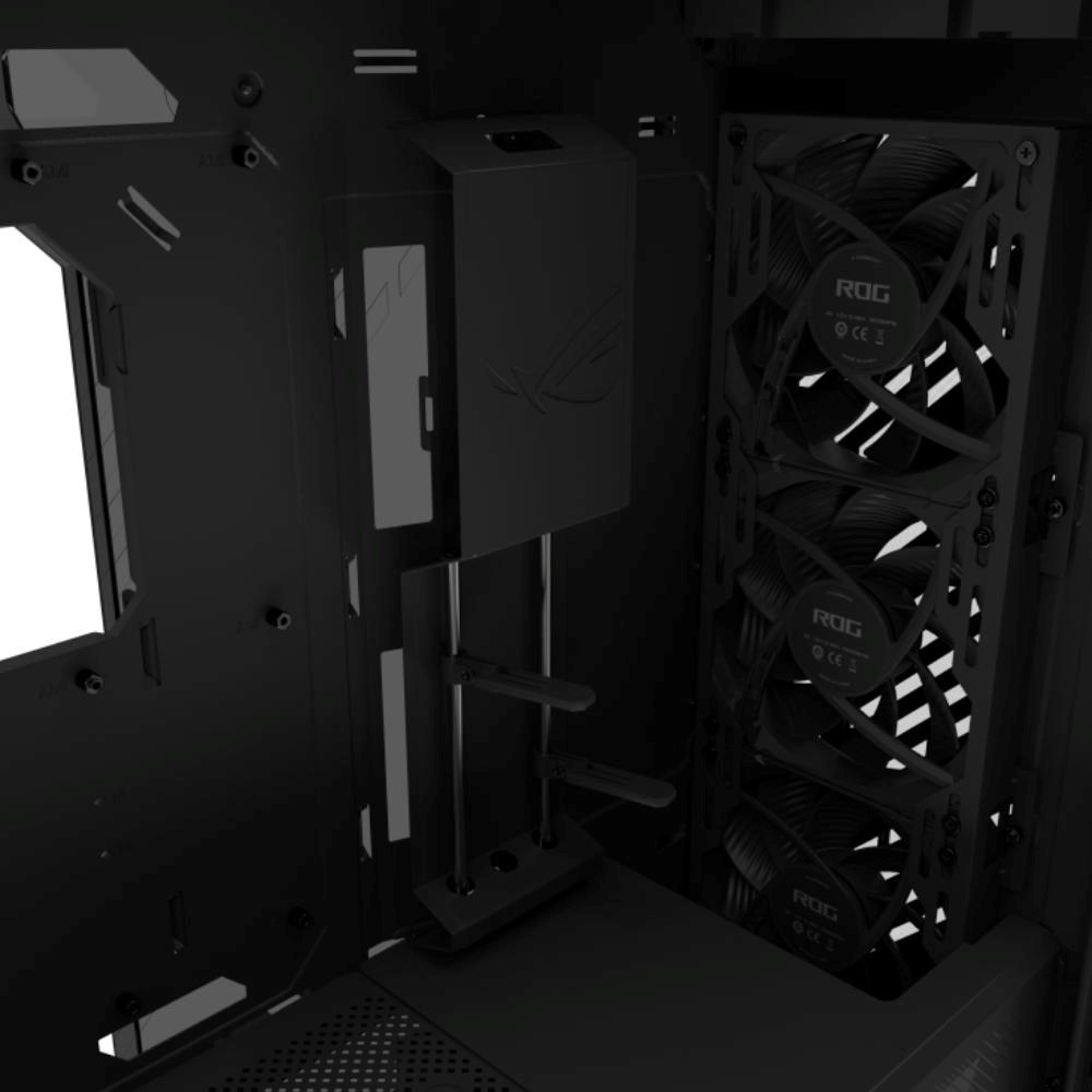 - Úhledné sestavení PC: Snadnou správu kabelů umožňuje multifunkční kryt s držáky grafických karet, kryt zdroje, kryt kabelů a zadní kabelové spony.
