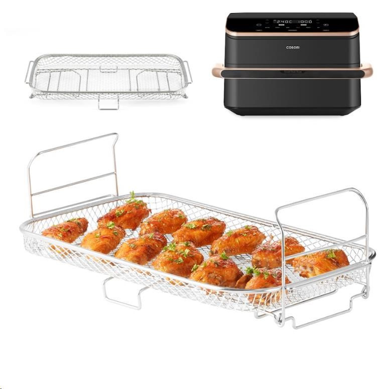 Univerzální grilovací mřížka pro fritézy Cosori Twin Fry pro použití s funkcí „Grandzone“. Možnost mytí v myčce. Rozměry (Š x H x V): 36,8 x 18,8 x 11,6 cm Nikdy nečistěte mřížku, pokud je příliš horká. Produkt je vhodný pouze pro Cosori Dual Blaze TwinFry.