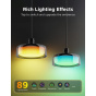 Govee Pendant Light je vybaven třístupňovým kruhovým osvětlením, které poskytuje 360° osvětlení s možností nezávislého ovládání každé zóny. Světlo je nastavitelné od teplé bílé 2700 K po studenou 6500 K a nabízí vysoký index podání barev (CRI 95). Instalace lustru je jednoduchá a díky nastavitelnému závěsnému kabelu až 150 cm si jej snadno přizpůsobíte výšce svého stropu.