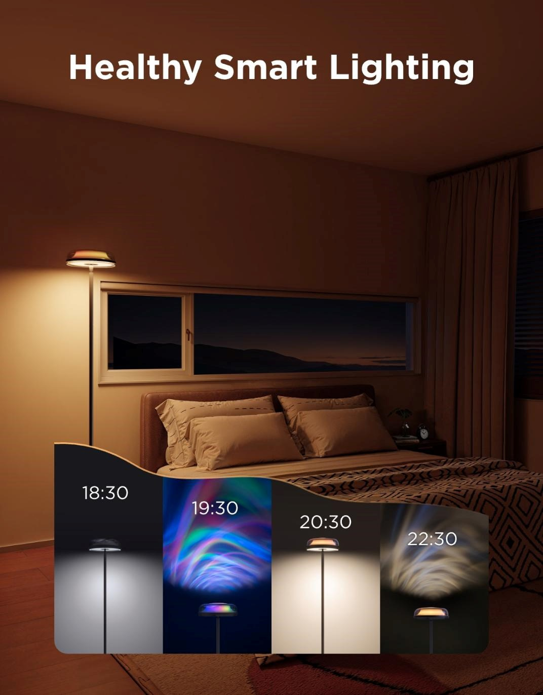 Funkce „Auto-Run“ automaticky mění barvy a intenzitu světla podle denní doby a vaší rutiny. Ráno poskytuje energizující světlo, přes den jemnou ambientní záři a večer uklidňující projekce. Díky tomu je lampa ideální pro přirozené nastavení rytmu dne ve vašem prostoru.