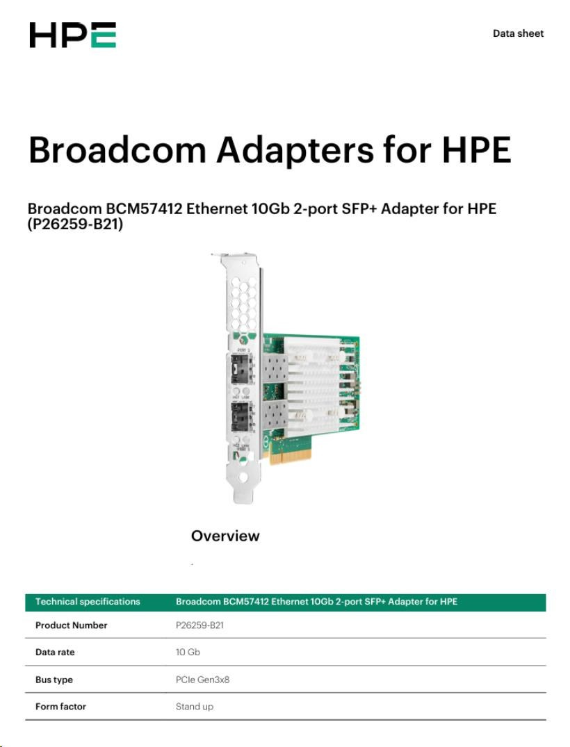 Broadcom BCM57412 Ethernet 10Gb 2-port SFP+ Adapter for HPE.
