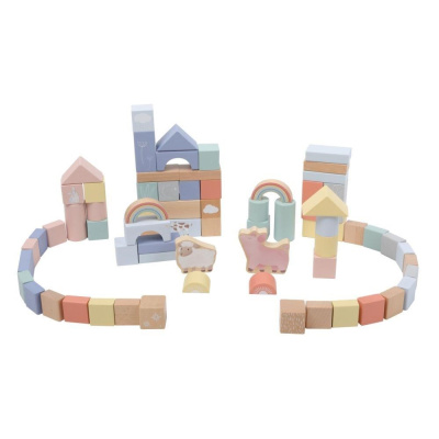Sada dřevěných kostek s motivem Farma nabízí spoustu možností ke hře. Využití stavebních kostek je široké, přináší spoustu zábavy a zdokonalují dětské dovednosti. Z kostek děti hravě postaví farmu s oblíbenými hospodářskými zvířátky, ovečkou a nafrněným prasátkem, využijí je při hře s autíčky a hracími koberci. Sada 70 kostek je montessori hračkou se zvířátky v realistickém provedení..