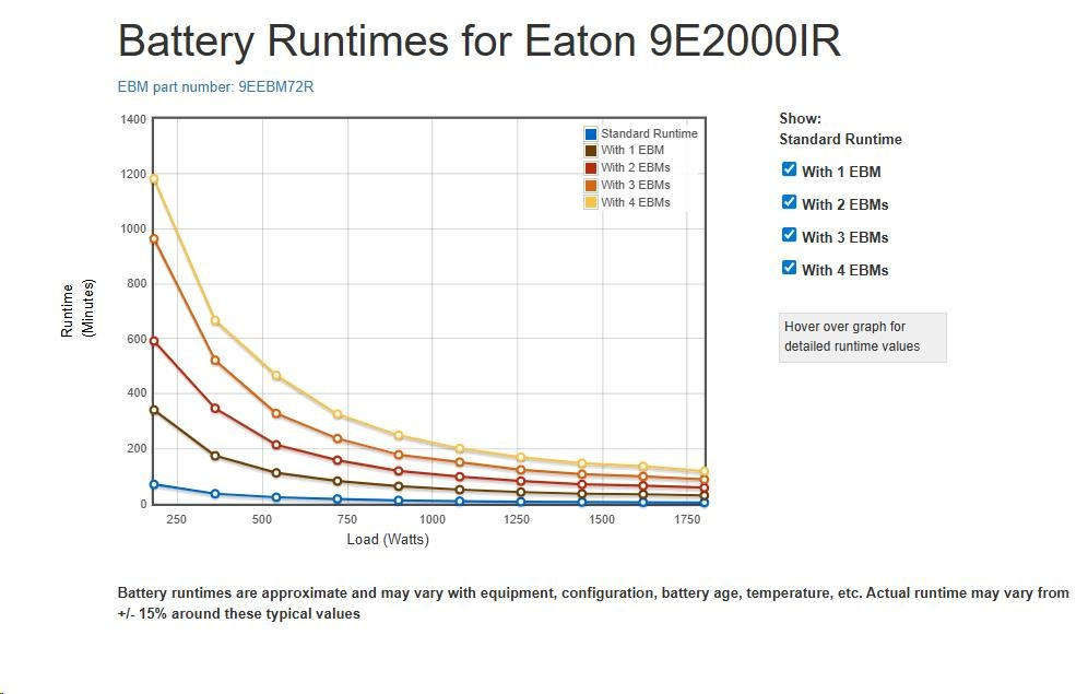 | TECHNICKÉ ÚDAJE PRODUKTU | SEKUNDÁRNÍ FREKVENCE - MAX. 60 Hz KŘIVKA VÝSTUPNÍHO NAPĚTÍ Sinusový výstup MAXIMÁLNÍ POČET BATERIOVÝCH MODULŮ 4 VÝKON 1800 W VÝSTUPNÍ ÚČINÍK 0,9 PROVEDENÍ Rack ZKRESLENÍ NAPĚTÍ VÝSTUPU (LINEÁRNÍ ZÁTĚŽ) – MAX. 3 ZAHRNUJE SÍŤOVOU KARTU Ne ZAPOJENÍ VSTUPU C14 VSTUPNÍ NAPĚTÍ – MIN. 140 V VÝSTUPNÍ NAPĚTÍ – MAX. 240 V SEKUNDÁRNÍ FREKVENCE - MIN. 50 Hz KOMPATIBILITA SOFTWARU Software Eaton Intelligent Power Manager, Eaton Intelligent Power Protector VÝMĚNA BATERIE Vyměnitelné baterie TYP BATERIE Bezúdržbový, olověný ÚČINNOST 91 ZVLÁŠTNÍ CHARAKTERISTIKY Topologie dvojité konverze Neustále monitoruje kvalitu vstupního napájení a reguluje napětí a frekvenci na výstupu Poskytuje větší činný výkon (ve wattech) pro lepší ochranu zařízení s účiníkem 0,9 Interní bypass zajišťuje kontinuitu provozu v případě poruchy UPS LCD displej Dlouhá doba zálohy s až 4 volitelnými EBM |