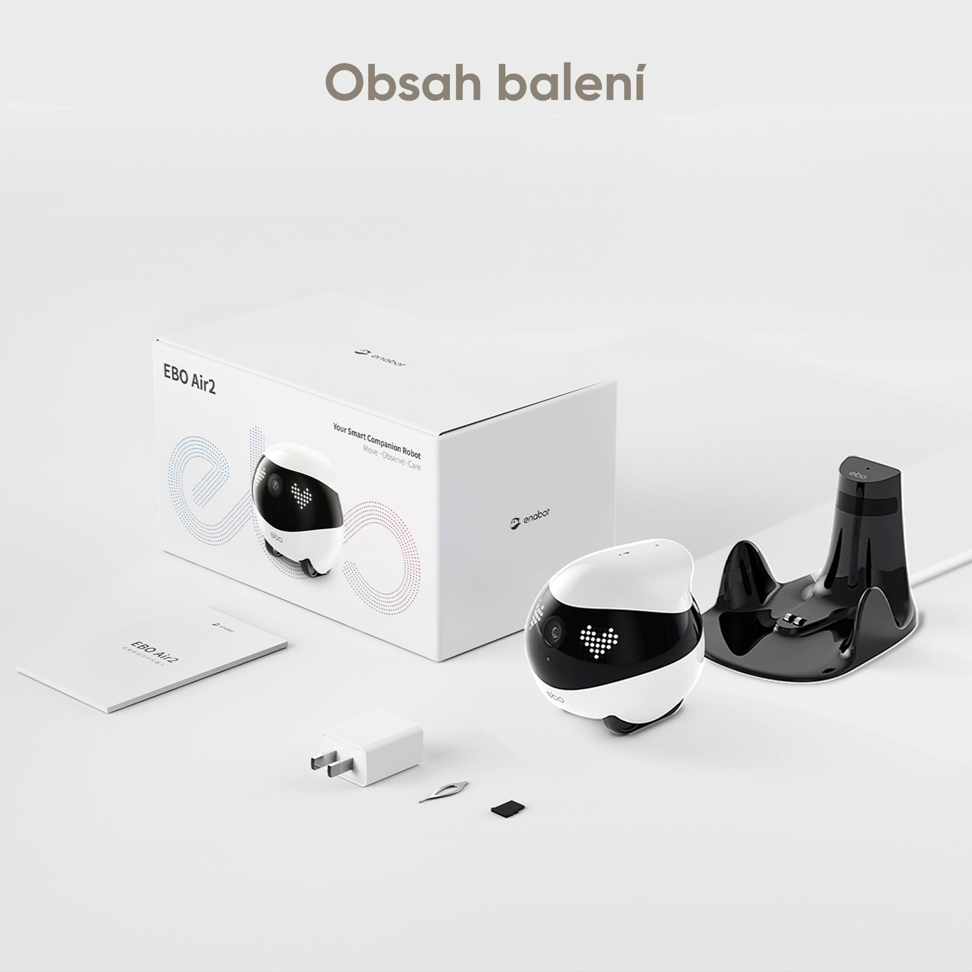 EBO Air 2 je všestranný mobilní robot-společník pro váš domov, který přináší inteligentní dohled, komunikaci a interaktivitu v jednom zařízení. Díky pohybu na gumových pásech dokáže projíždět domácností, sledovat a nahrávat, na rozdíl od statických IP kamer. Funguje jako domácí komunikátor, kterému můžete zavolat a zkontrolovat své blízké. Díky AI chatbotovi s podporou LLM modelů dynamicky reaguje na váš hlas a umí inteligentně odpovídat. Funkce AI chatbota podporuje angličtinu, němčinu, francouzštinu, španělštinu, portugalštinu, italštinu, japonštinu korejštinu a polštinu.