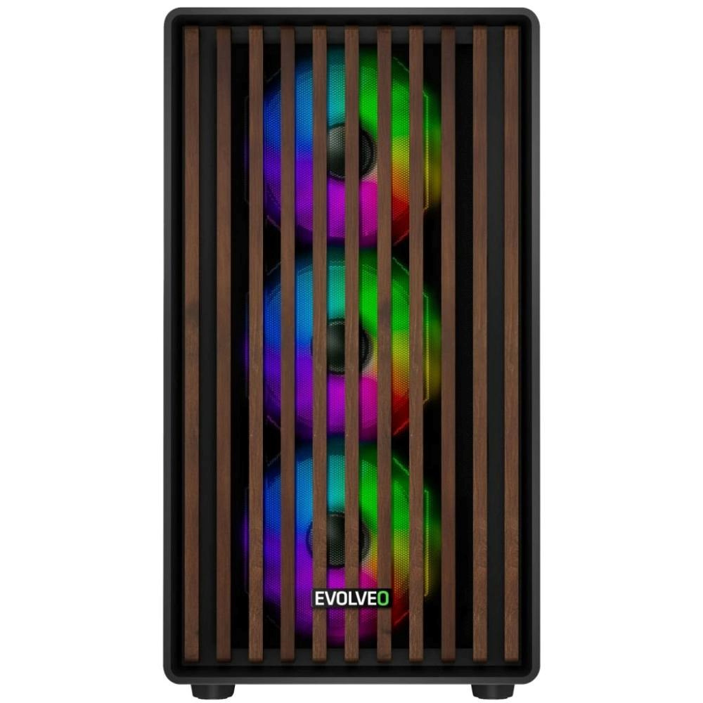 EVOLVEO Panthera-BK-6, to není žádná nudná krabice na součástky, ale špičková PC skříň, která si zasluhuje pozornost. Do světa vyspělých videoherních technologií totiž přináší vytříbenou eleganci, a dokonce i trochu přírody – je osazena dřevěným čelním panelem, září působivým zrcadlovým podsvícením a bočnici má z temperovaného skla, takže přednosti vašeho počítače neskrývá, ale naopak hrdě vystavuje na odiv.