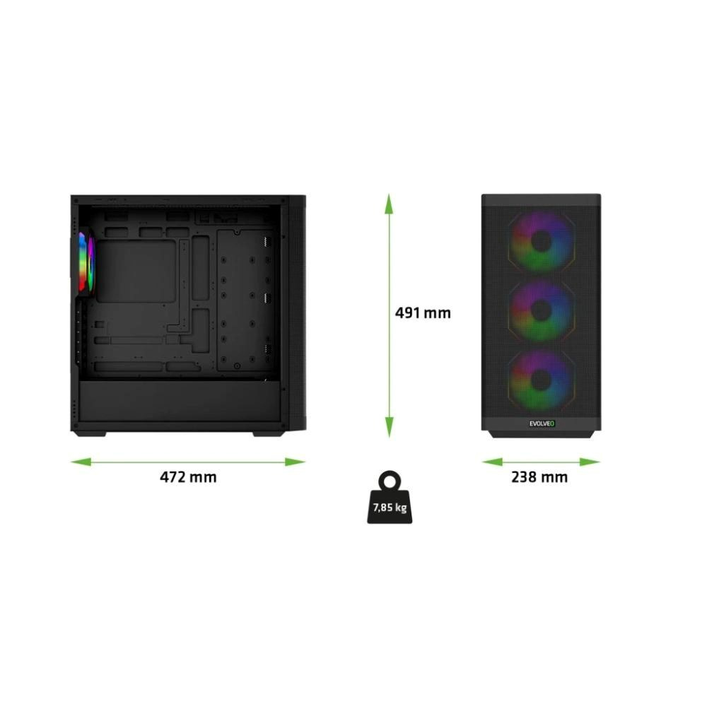 Herní počítačová (e)ATX skříň EVOLVEO Scorpio-BK-4