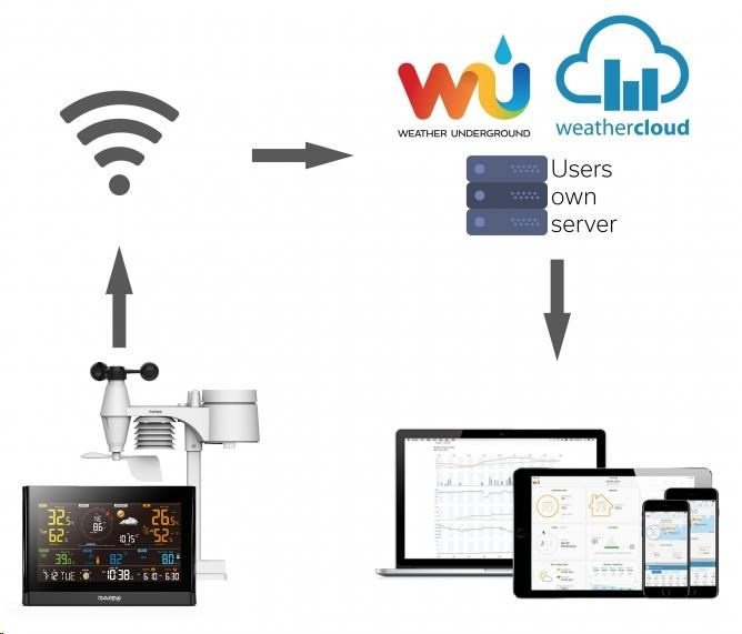 Hlavní jednotka je osazena vysokorychlostními procesory, které analyzují naměřené hodnoty meteorologických veličin a ty pomocí místní Wi-Fi sítě v reálném čase nahrává na zvolený server/servery Weather Underground a Weathercloud, případně na vlastní server uživatele, nebo na server PocasiMeteo.cz. Zasílání dat je možné na všechny servery současně.