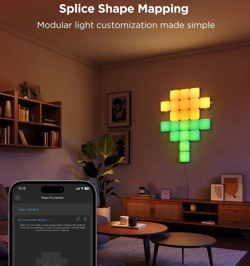 - Živé RGBIC efekty: Zobrazte více zářivých barev současně na každém panelu.