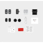 Balení obsahuje dva malé a lehké vysílače s vestavěnými mikrofony, které se bez námahy připnou na oblečení. Přijímač USB-C se připojuje přímo k zařízení a poskytuje bezproblémový provoz plug-and-play bez dalších adaptérů nebo kabelů.