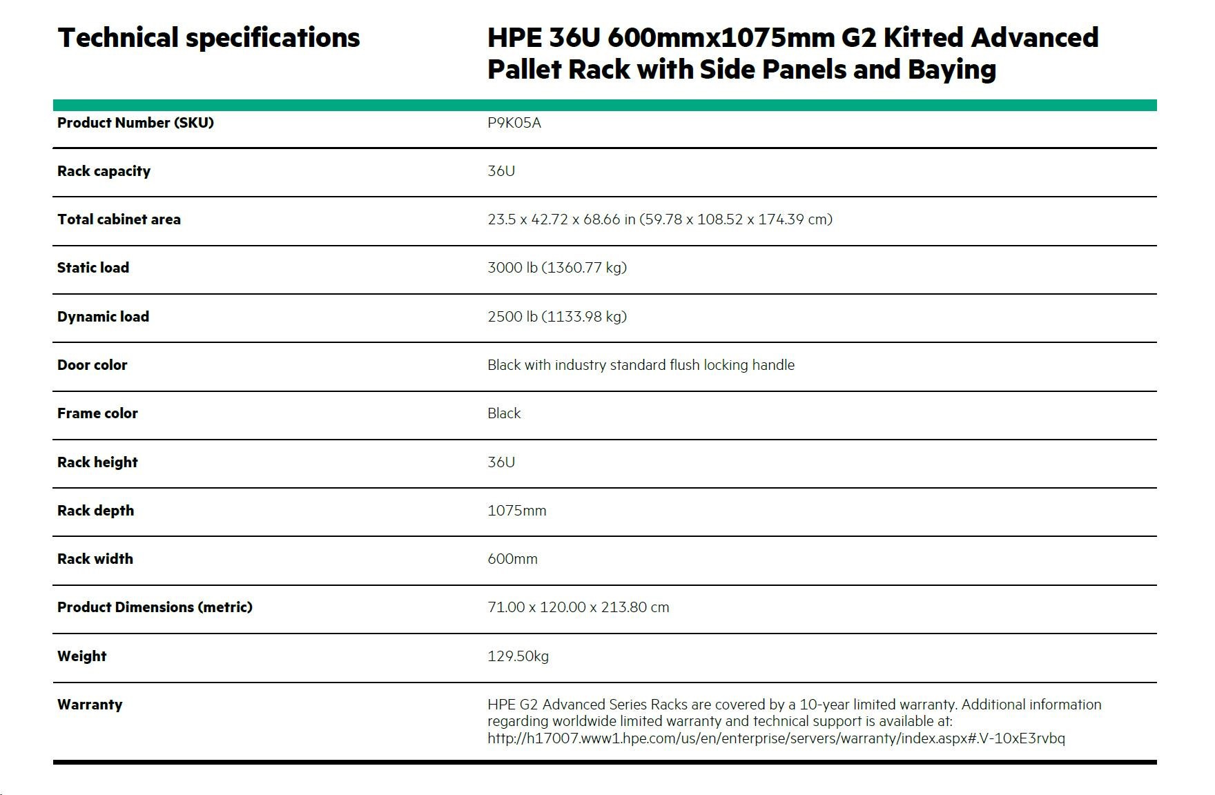 HPE Rack 36U 600mmx1075mm G2 Kitted Advanced Pallet Rack with Side Panels and Baying