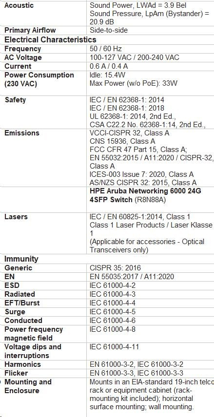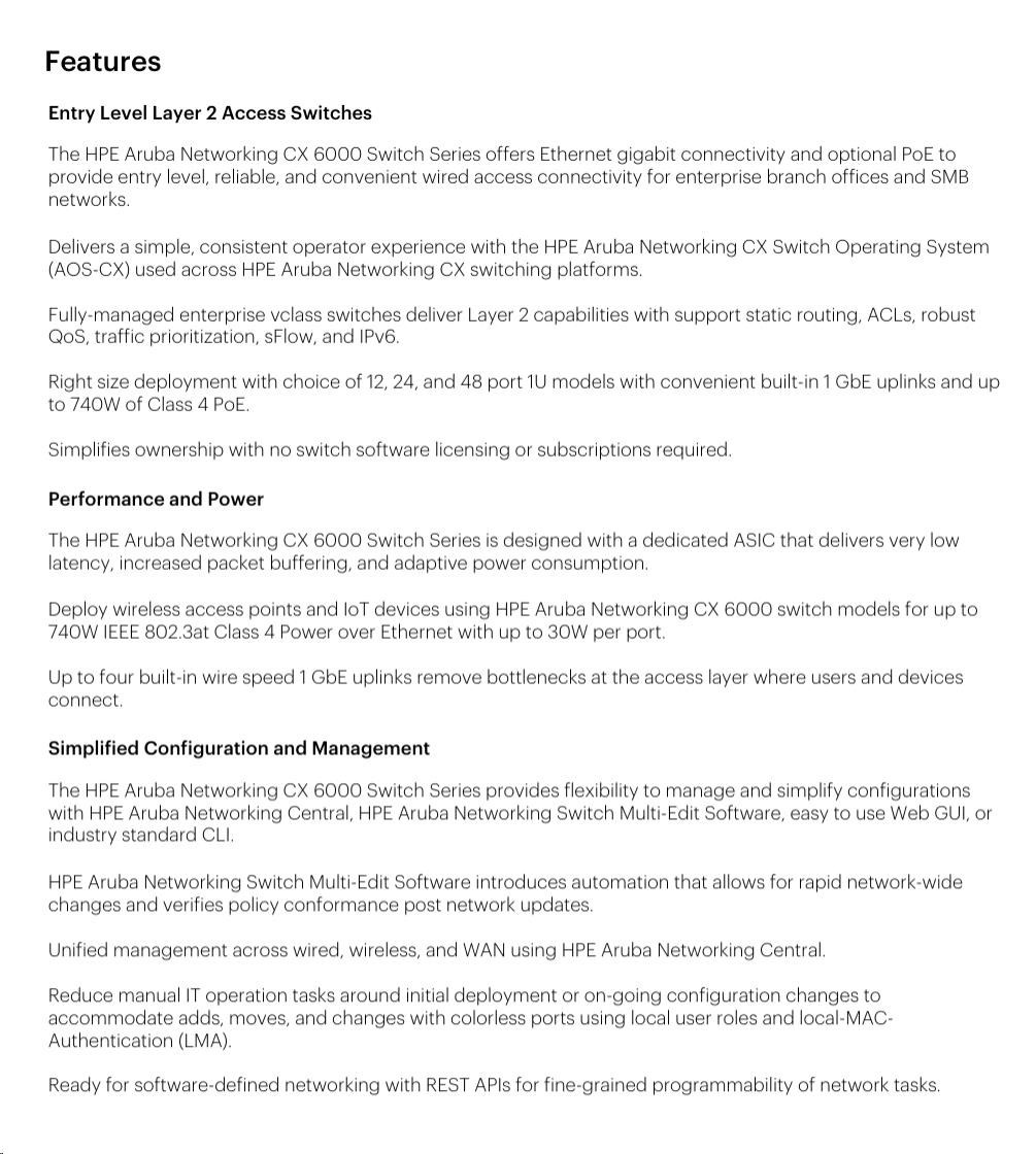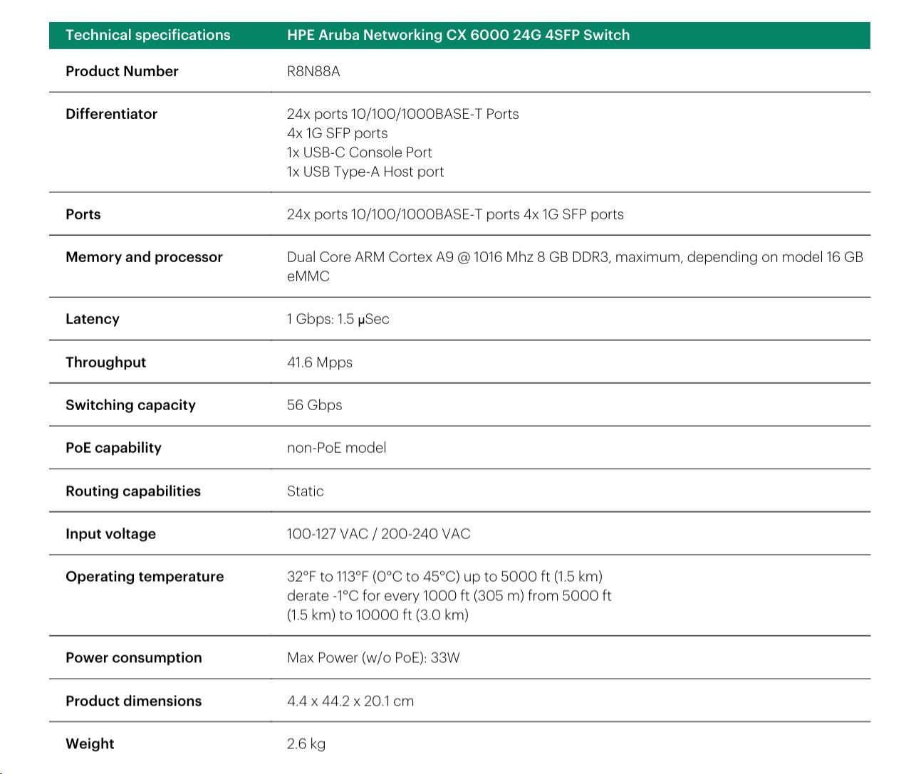 HPE Aruba Networking CX 6000 24G 4SFP Switch.