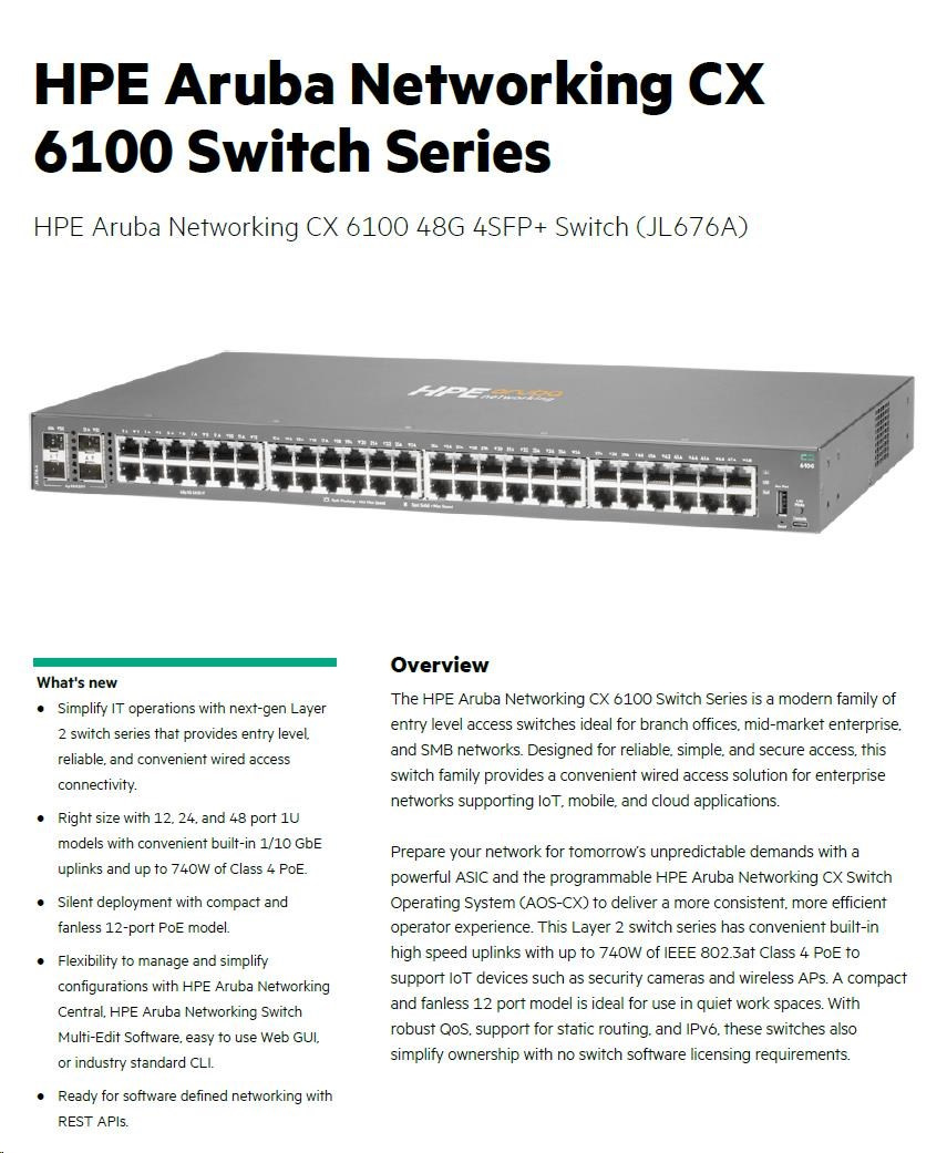 HPE Aruba Networking CX 6100 48G 4SFP+ Switch RENEW JL676AR#ABB.