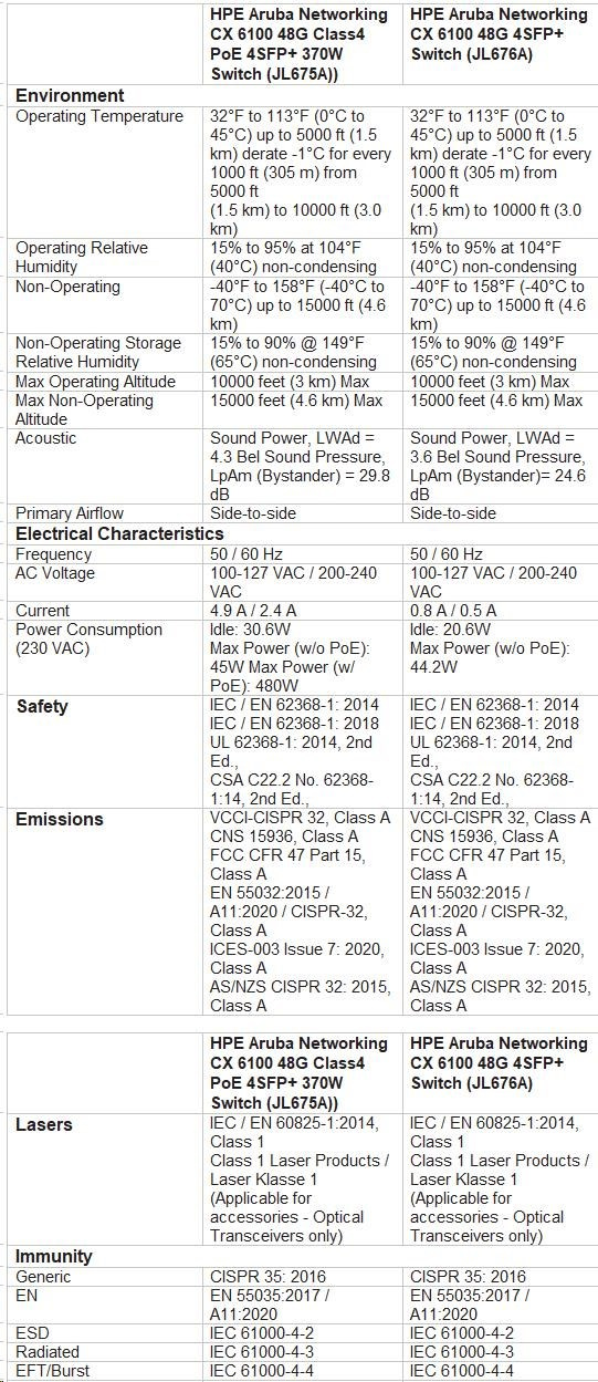 HPE Aruba Networking CX 6100 48G 4SFP+ Switch.
