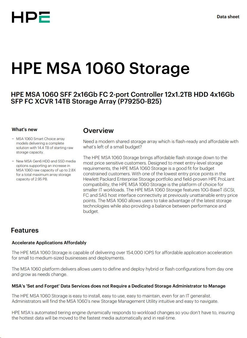 HPE MSA 1060 SFF 2x16Gb FC 2-port Controller 12x1.2TB HDD 4x16Gb SFP FC XCVR 14TB Storage Array.