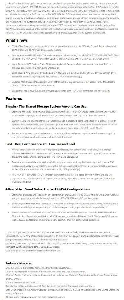 HPE MSA 2070 SFF 2x10/25GbE iSCSI 4-port Cntrl 12x1.92TB SSD 4x10Gb iSCSI XCVR 23TB Storage Array.
