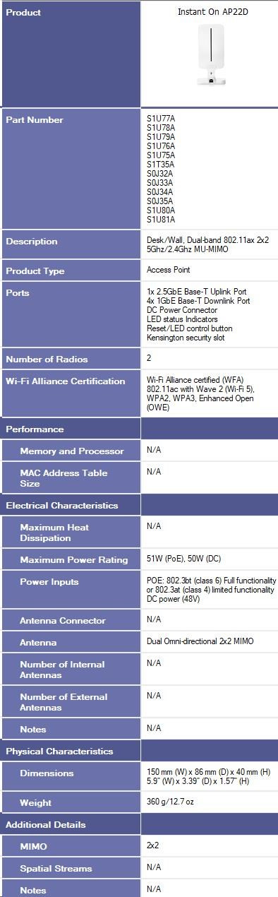 HPE Networking Instant On Access Point AP22D Bundle with PSU Dual Radio 2x2 Wi-Fi 6 (EU) AP22D.
