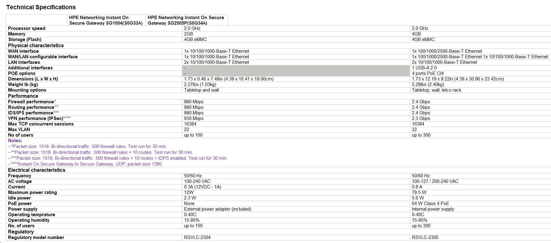 | HPE Networking Instant On Secure Gateway SG1004(S0G33A) | HPE Networking Instant On Secure Gateway SG2505P(S0G34A) |