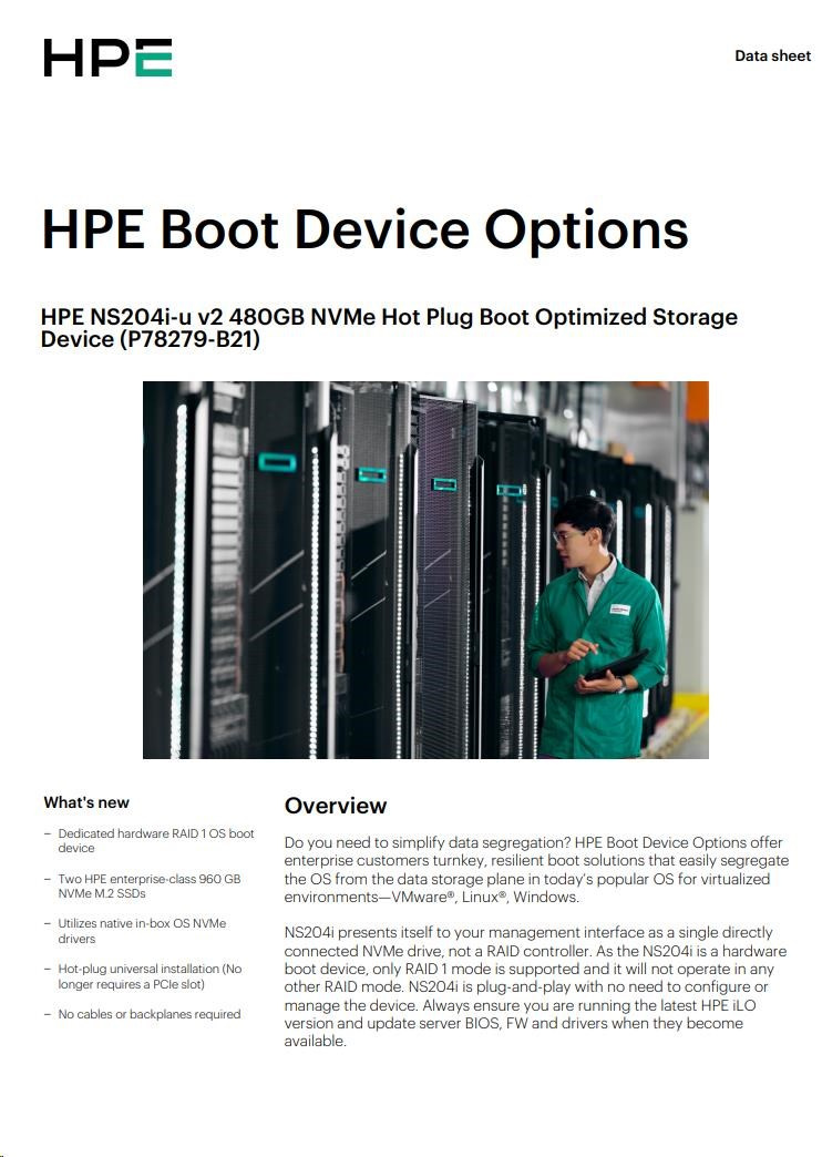HPE NS204i-u v2 480GB NVMe Hot Plug Boot Optimized Storage Device