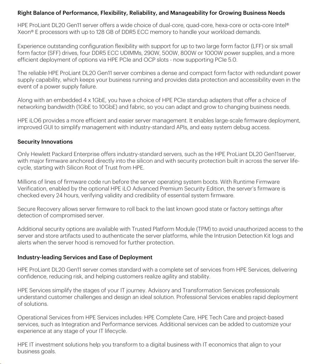 HPE PL DL20 gen11 6333P (3.1G/6C12T) 1x32G 4SFF 2x480GB VROC 1x1000W 4x1G NBD333 Smart Choice.
