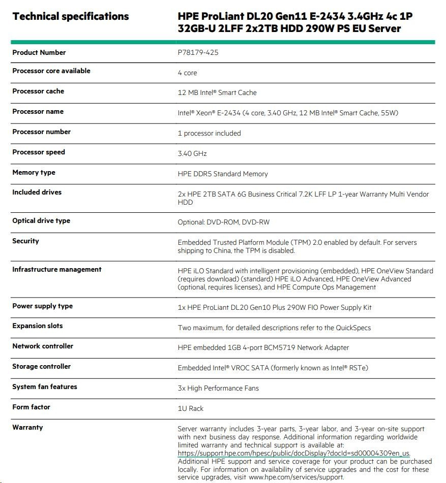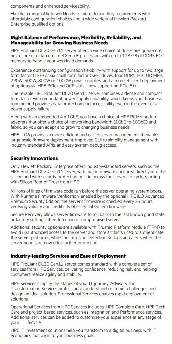 HPE PL DL20g11 6325P (3.5G/4C8T) 1x32G 2x2TB/7.2k SATA VROC 2LFF-HP 4p1Gb 290W Smart Choice.