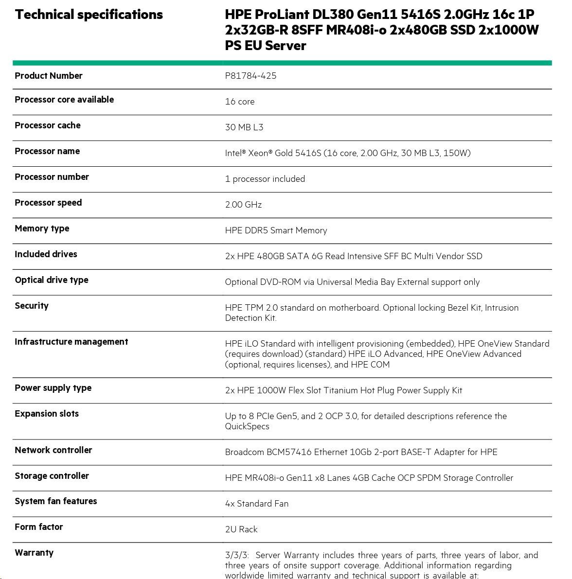 HPE PL DL380g11 5416S (2.0/16C) 2x32G (P43328) 2x480G MR408i-o/4G 8-26SFF 2x1000W 2x10G-T 2U Smart Choice.