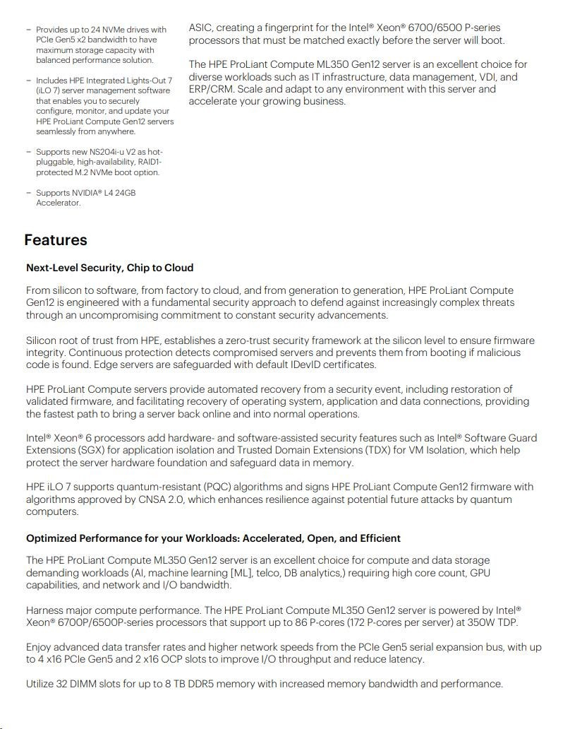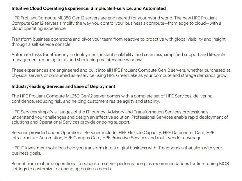 HPE PL ML350 Gen12 6505P (2.2/12C) 1x64G (P69728) 2x960G MR408i-o 8SFF 2x1000W 1GbE NBD333 Smart Choice.