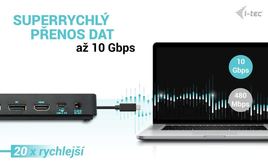 • Volitelné klonování adres MAC a automatické zálohování dat připojeného počítače (při použití softwaru i-tec Docker Pro).