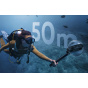 Robustní konstrukce s vodotěsností IPX8 umožňuje bezpečné použití v hloubkách až 50 metrů, ideální pro potápění, šnorchlování nebo profesionální natáčení pod vodou.