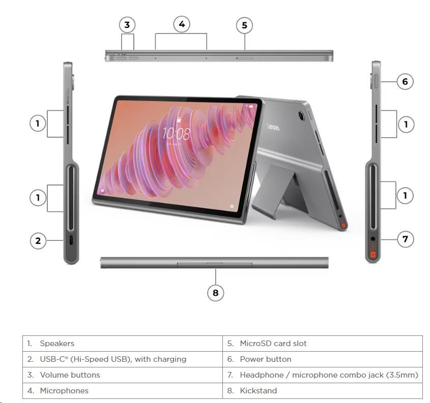 | Standartné porty | 1x USB-C® (Hi-Speed USB / USB 2.0), with charging, digital audio 1x Headphone / microphone combo jack (3.5mm) 1x microSD card slot |