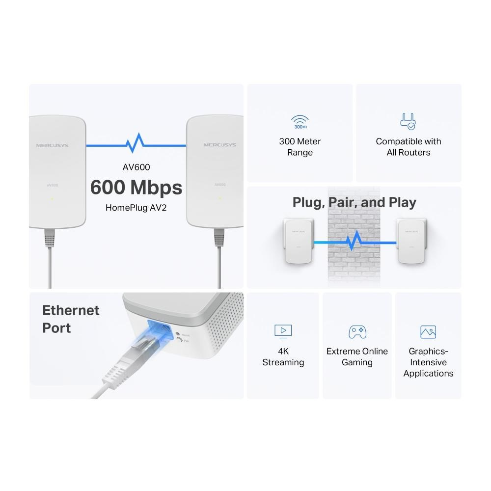 - 600 Mbps vysokorychlostní přenos: Rychlý a stabilní přenos díky pokročilé technologii HomePlug AV2‡