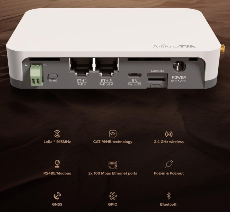 Brána IoT průmyslové třídy pro inteligentní sledování majetku, vzdálené monitorování a efektivní automatizaci - nyní s vylepšeným příjmem LoRa®, souběžným GPS + LTE CAT-M a nižší cenou. KNOT LR9G je kompaktní, ihned použitelná brána pro sítě založené na LoRa®, navržená tak, aby poskytovala cenově dostupnou a spolehlivou konektivitu i v těch nejodlehlejších prostředích. Podporuje LTE CAT-M1 a NB2, Bluetooth 5.2, 2,4 GHz Wi-Fi, GPS a Ethernet s PoE, což z něj činí flexibilní základ pro jakékoli nasazení IoT. Ať už sledujete cenná aktiva v nemocnici, spravujete prodejní automat v nákupním centru nebo monitorujete senzory na zemědělském poli. Funkce a vlastnosti: • Souběžné GPS a LTE CAT-M Sledujte pohybující se aktiva pomocí přesného GPS a zároveň udržujte živé připojení LTE CAT-M1. Ideální pro mobilní jednotky, jako jsou servisní vozidla, kontejnery nebo roamingové terénní zařízení. • Univerzální napájení Vyberte si z PoE-in, DC jack nebo MicroUSB – včetně PoE-out na Ether2 pro napájení dalších zařízení. • SMA konektory pro všechny hlavní rozhraní Snadné nastavení antény pro LTE, GPS a LoRa®. • Vylepšený příjem 915 MHz LoRa® Vylepšená citlivost pro silnější signál a delší dosah, i v prostředí s velkým rušením. • Nižší cena, stejná spolehlivost Cenově výhodné pro rozsáhlá nasazení bez snížení výkonu. • Poháněno RouterOS v7 Pro plnou kontrolu, vlastní skriptování a pokročilé funkce směrování. Příklady praktického nasazení: Sledování majetku nemocnice Připojte majáky Bluetooth ke kritickému zdravotnickému vybavení. Nainstalujte KNOT LR8G do každého skladovacího prostoru. Při pohybu zařízení KNOT detekuje blízké štítky, sleduje polohu pomocí GPS a odesílá aktualizace přes LTE CAT-M - udržuje aktuální stav inventáře a snižuje počet manuálních kontrol. Zemědělství a odlehlé lokality Nasaďte KNOT ke sběru dat z půdních nebo meteorologických senzorů na venkovských polích. Díky podpoře širokého pásma, příjmu LoRa® a kompatibilitě s GPS je ideální pro sběr dat na velké vzdálenosti a s nízkou spotřebou energie. Monitorování chladicího řetězce Používejte kabelové senzory Modbus ke sledování teploty a vlhkosti uvnitř chladicích kontejnerů. KNOT převádí Modbus na TCP a bezpečně předává data prostřednictvím MQTT nebo HTTPS s využitím nízkopásmového LTE nebo NB-IoT. Průmyslová automatizace Přemostění starších kabelových senzorů a akčních členů do cloudu. Díky podpoře lišty DIN a monitorování GPIO se KNOT snadno integruje do průmyslových rozváděčů nebo výrobních prostředí. Upozornění: IoT brána není plnohodnotným LTE routerem. SIM karta není určená pro vytáčení připojení, ale pro komunikaci v síti IoT. IoT brána nedisponuje LTE modemem. Jak by to všechno fungovalo v reálném životě? Představme si nemocnici. Spousta drahého majetku se pohybuje v obrovských budovách. Nástroje, vybavení, léky, na co si vzpomenete. Všechno se neustále přesouvá. neustále přesouvá. Nemocnice obvykle musí vynakládat spoustu prostředků na kontrolu inventáře. Pojďme to napravit. Umístěte na všechny důležité položky lokalizační Bluetooth čipy. Přidejte zařízení KNOT do každého skladovací místnosti. Nyní vedení nemocnice vždy ví, zda se vybavení vrátilo na své místo. Technické specifikace: Product code: RB924iR-2nD-BT5&BG770A&R11e-LR9G CPU: Single-core QCA9531 650 MHz CPU architecture: MIPSBE Size of RAM: 64 MB RAM type: DDR2 Storage: 16 MB, Flash Number of 100M Ethernet ports: 2 MiniPCIe slots: 1 USB slots: 1 microUSB type AB Wireless interface model: QCA9531 Wireless: 2.4 GHz 802.11b/g/n dual-chain Antenna gain: 1.5 dBi Antenna beam width: 360° GNSS standard: GPS LoRa band: 915 MHz Bluetooth version: 5.2 IoT modem: BG770A Cat NB2: B1/B2/B3/B4/B5/B8/B12/B13/B17/B18/B19/B20/B25/B28/B66 Cat M1: B1/B2/B3/B4/B5/B8/B12/B13/B18/B19/B20/B25/B26/B27/B28/B66 Dimensions: 122 x 87 x 26 mm Operating system: RouterOS v7, License level 4 Operating temperature: -40°C to +70°C Napájení: Number of DC inputs: 3 (DC jack, Micro USB, PoE-In) DC jack input Voltage: 12-57 V Micro USB input Voltage: 5-5 V PoE-In input Voltage: 18-57 V Power adapter nominal voltage: 24 V Power adapter nominal current: 1.2 A PoE-In: 802.3af/at PoE-Out: Passive PoE Smart PoE: Injector PoE-Out ports: Ether2 Max out per port output (input < 30 V): 650 mA Max out per port output (input > 30 V): 450mA Max power consumption (without attachments): 6 W Max power consumption: 23 W Internet věcí (anglicky Internet of Things, zkratka IoT) je termínem pro moderní přístroje ovladatelné i na dálku pomocí internetu. Snadno je tak obsloužíte pomocí svého chytrého telefonu nebo je jednoduše připojíte k centrální jednotce. Umožní tak snadno zautomatizovat věci, o které byste se jinak museli postarat sami. Jedná se o technologický koncept umožňující realizaci takzvaného "inteligentního domu" (automatické zhasínání světel, ovládání vytápění apod.). Umožňuje řídit klimatizaci, vyhřívání vašeho bazénu, ohřev vody, pečovat o vaše akvárium, obsluhovat nastavení alarmu či mechanických zámků. Pokud si nejste jistí, zda jste v ranním shonu vypnuli žehličku, můžete na dálku odpojit od sítě jednotlivé zásuvky. Vaše lednička vás dokáže upozornit na chybějící potraviny a připravovat aktualizovaný nákupní seznam. Upozornění Výrobce Mikrotik neposkytuje záruku na zařízení poškozená přepětím. Zařízení je třeba adekvátně chránit proti indukovanému elektrostatickému přepětí či přepěťovým špičkám na silovém vedení. Pro venkovní instalace používat výhradně stíněnou kabeláž (FTP/SFTP), jednotky korektně uzemnit (užití integrovaného zemníc