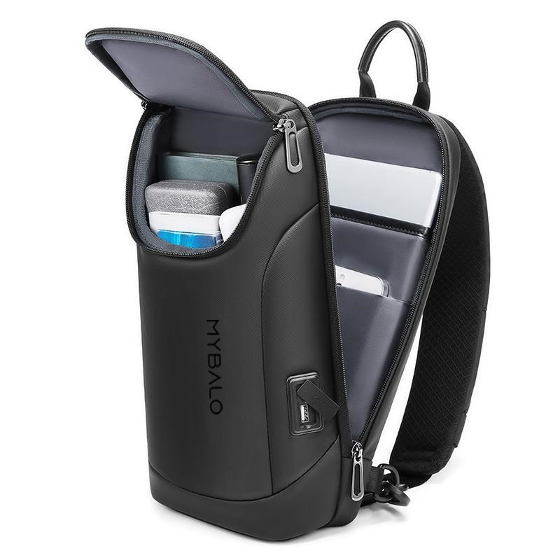 MYBALO Breeze je kompaktní batoh přes rameno, ideální pro volný čas. Nabízí úložný prostor o objemu5,5 l, přihrádku na tablet do úhlopříčky 9,7", USB a USB-C port pro nabíjení elektronických zařízení kdekoli a kdykoli, skrytou kapsu na cennosti a praktické vnitřní přihrádky. Pohodlné nošení zajišťuje polstrovaný popruh a zádová část. Popruh je navíc nastavitelný a odnímatelný. Batoh je vyroben z nepromokavého kvalitního materiálu s dlouhou životností. MYBALO Breeze je skvělou volbou pro volný čas.Hodí se pro pány i pro dámy a je velmi univerzální.