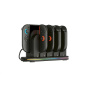 Tato nabíjecí dokovací stanice od společnosti Nacon přijde vhod všem majitelům nové herní konzole Nintendo Switch 2 i původní herní konzole Nintendo Switch, kteří často potřebují nabíjet větší počet ovladačů Joy-Con. Stanice umožňuje nabíjet současně až čtyři ovladače, jakož i samotnou konzoli, jejímuž přehřátí zabraňuje zabudovaný chladicí větráček. O stavu nabíjení každého z ovladačů informuje příslušný LED ukazatel, zatímco RGB proužek s výběrem z devíti různých efektů dodává stanici stylový, moderní vzhled. Protože napájecí USB-C kabel není součástí balení, slouží k připojení stanice do elektrické sítě originální napájecí příslušenství dodávané s konzolí.