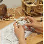 Jak zní historie? Stavebnice gramofonu z překližky. Retro designem, inspirovaným gramofonem vynalezeným Thomasem Edisonem, Vás přenese do 19. století. Není to jen model, skutečně umí přehrávat desky a je k němu i dodávána 7" gramodeska obsahující trojici písní (The Merry Gent, Memory Of A Dance, The Giant Killers). Zařízení disponuje ručně, klikou, poháněnou mechanikou a dynamem. Je možné jej ale pohánět i elektricky, pomocí vestavěného micro-USB konektoru. Podporuje desky o rozměrech 17,5 cm (7") a 25 cm (10") a všechny jim odpovídající rychlosti přehrávání. Hlasitost reprodukce lze upravovat pomocí otočného ovladače. Jedinečný dárek pro všechny milovníky kutilství a hudby, ale také luxusní interiérová dekorace do pokoje či kanceláře. Skládačka je dodávána v nesloženém stavu, balena v krabici. Vybaveno detailním návodem k sestavení.