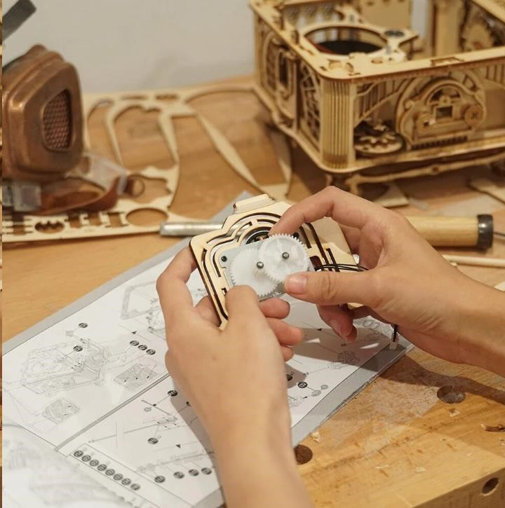 Jak zní historie? Stavebnice gramofonu z překližky. Retro designem, inspirovaným gramofonem vynalezeným Thomasem Edisonem, Vás přenese do 19. století. Není to jen model, skutečně umí přehrávat desky a je k němu i dodávána 7" gramodeska obsahující trojici písní (The Merry Gent, Memory Of A Dance, The Giant Killers). Zařízení disponuje ručně, klikou, poháněnou mechanikou a dynamem. Je možné jej ale pohánět i elektricky, pomocí vestavěného micro-USB konektoru. Podporuje desky o rozměrech 17,5 cm (7") a 25 cm (10") a všechny jim odpovídající rychlosti přehrávání. Hlasitost reprodukce lze upravovat pomocí otočného ovladače. Jedinečný dárek pro všechny milovníky kutilství a hudby, ale také luxusní interiérová dekorace do pokoje či kanceláře. Skládačka je dodávána v nesloženém stavu, balena v krabici. Vybaveno detailním návodem k sestavení.