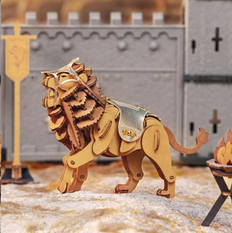 Tento skvělý bojovník nesmí chybět v žádné bitvě slavného generála. S ním nebude žádná bitva prohrána! 3D dřevěné puzzle Bojovný lev - Warior Lion přinese spoustu zábavy nejen při sestavování, ale i při hraní. Výborně se doplňuje s Bojovým slonem (kód TWA02) a Vlkem bojovníkem (TWA04). Model má pohyblivé nohy, kožené stříbrné brnění se zlatými detaily, které poskytuje všestrannou ochranu před záludnými nepřáteli. Zároveň je krásnou dekorací na vystavení pro nadšence 3D puzzlí.