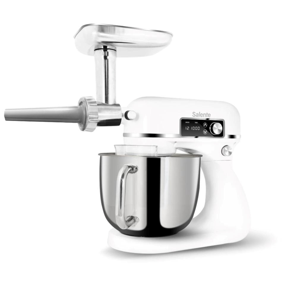 Salente DigiChef+ není žádný troškař. Tento kuchyňský robot v sobě spojuje hned šest různých funkcí (hněte, míchá, šlehá, mele maso, vyrábí klobásky či párky a vyrábí těstoviny). Zvládne tak vše od šlehání nadýchaných krémů přes hnětení hutného těsta na domácí chléb či pizzu až po mletí masa na tatarák. A nejen to!