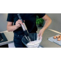 Salente Mixxo pracuje velmi tiše – díky hlučnosti maximálně 75 dB s ním můžete nachystat ranní smoothie, aniž byste probudili spící děti. Přívodní kabel je dlouhý 1,25 m, což vám zajišťuje dostatečnou svobodu pohybu. A pohodlnému používání nahrává i přijatelná hmotnost mixéru, která se pohybuje mezi 0,87 kg a 1,1 kg (podle použitého nástavce). V kuchyni s ním zkrátka máte vše pevně v rukou – včetně klíče, kterým si můžete odemknout bránu gastronomických zážitků.
