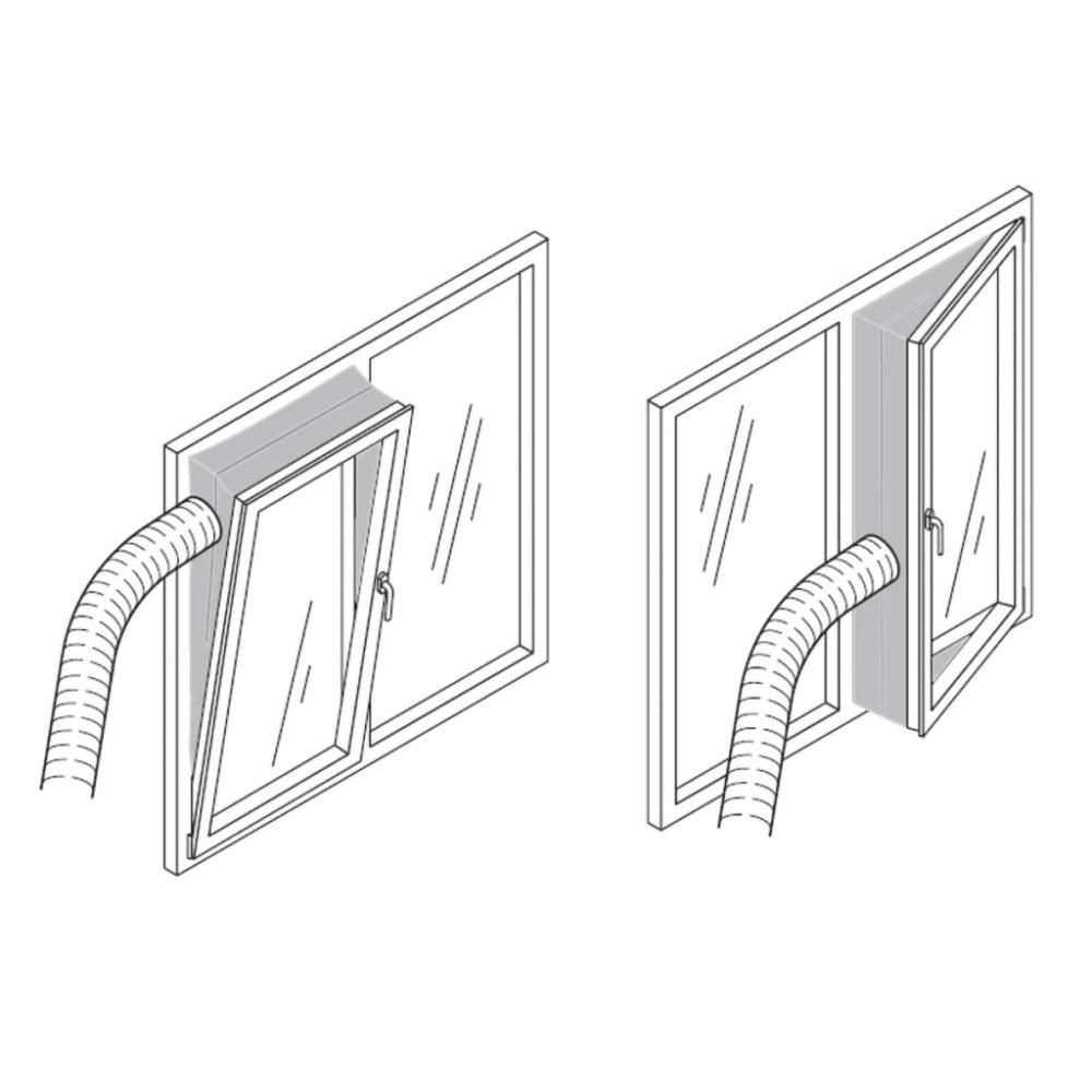 - Odvodu teplého vzduchu z místnosti přes dodávanou flexibilní hadici a těsnění do okna