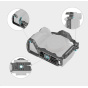 Zajišťuje fotoaparát pomocí jednoho spodního polohovacího kolíku, jednoho šroubu 1/4"-20 a jednoho šroubu M2,5 na levé straně.