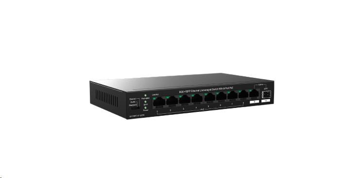 - Rozhraní: (9) 1GE RJ45 porty, (1) 1GE SFP porty