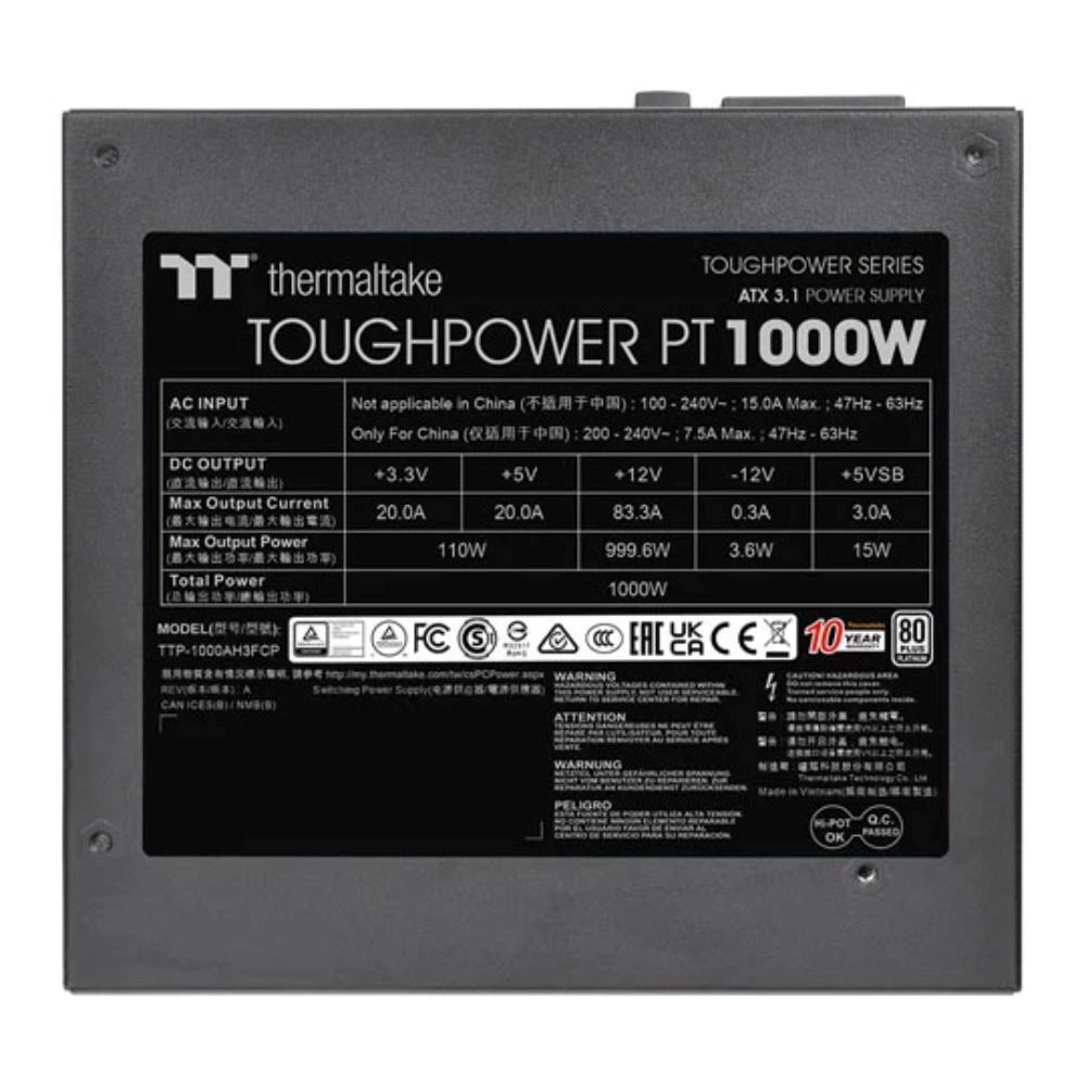 Výkon zdroje (W):1000; Formát zdroje:ATX; Konektory:8pin CPU 1x, 8pin CPU 2x, PCIe 6-pin, PCIe 8-pin, PCIe 16-pin Gen5, SATA 15-pin, Molex; Konektory pro základní desku:ATX 24-pin, EPS 8-pin; Modulární kabeláž; Efektivita zdroje:80 Plus Platinum; Vlastnosti zdroje:Modulární kabeláž; Podsvícení:Bez podsvícení.