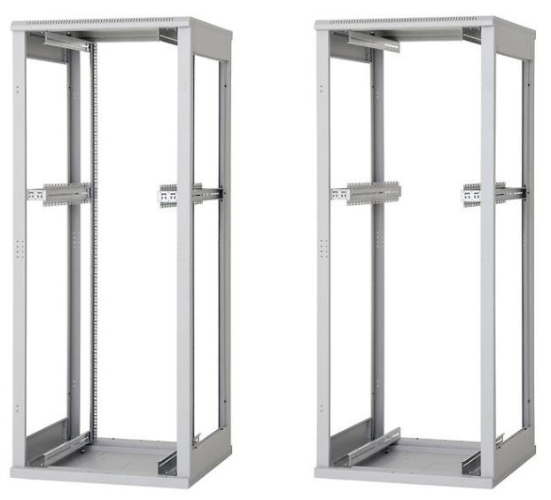 (platí pro šíři rozvaděče 800 mm). Systém umožňuje instalaci posuvných vertikálních lišt v rozponu 19“, 21“ a 23“, přesně podle požadavků instalovaných zařízení.