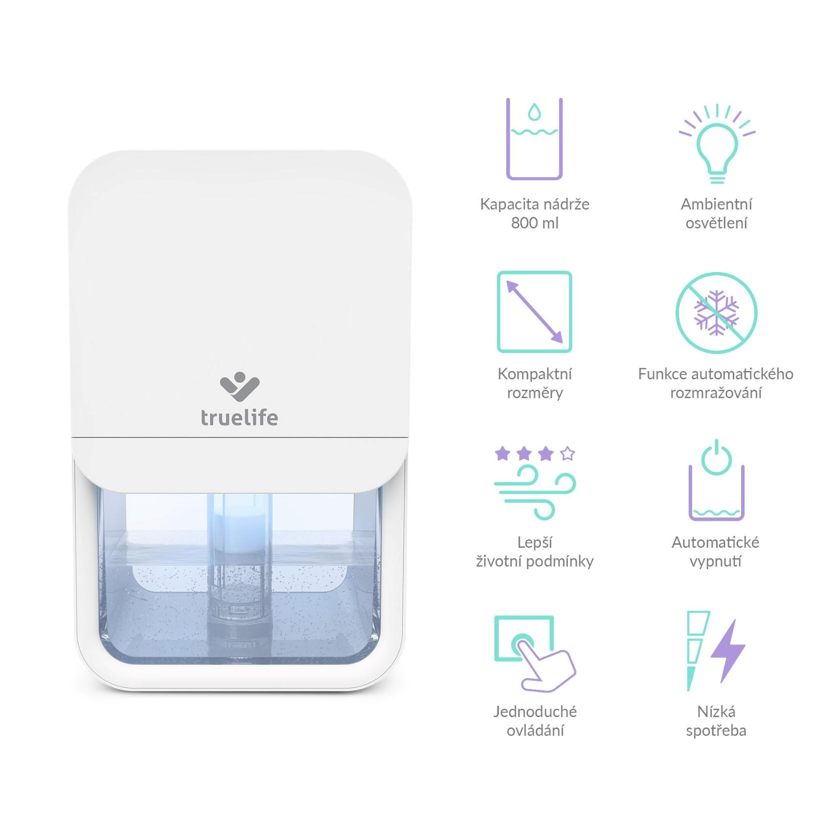 TrueLife AIR Dehumidifier DH3 byl navržen s ohledem na každodenní realitu, tudíž jeho hlavním cílem je, aby fungoval spolehlivě, ale zároveň nezabíral moc místa. Díky svému elegantnímu a prostorově úspornému designu se snadno vejde do ložnice, obýváku i kanceláře, aniž by narušil vzhled interiéru. Přesto dokáže efektivně snižovat vlhkost v místnosti a vytvořit zdravější prostředí, ve kterém se vám bude lépe dýchat.